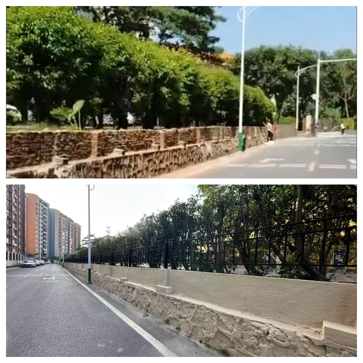 為了進一步提升中山溫泉至雍陌村的村道以及康睦里巷道沿途景觀,營造更加宜人的鄉(xiāng)村環(huán)境,中山溫泉于2024年11月對村道一側(cè)圍墻的墻面進行粉刷,全面更新圍墻欄桿,并精心栽種垂榕柱、三角梅、紫荊花等系列綠植,增設(shè)交通指引標(biāo)識,美化道路景觀,提升了鄉(xiāng)村道路的整體美感,提升了村民的滿意度和幸福感。