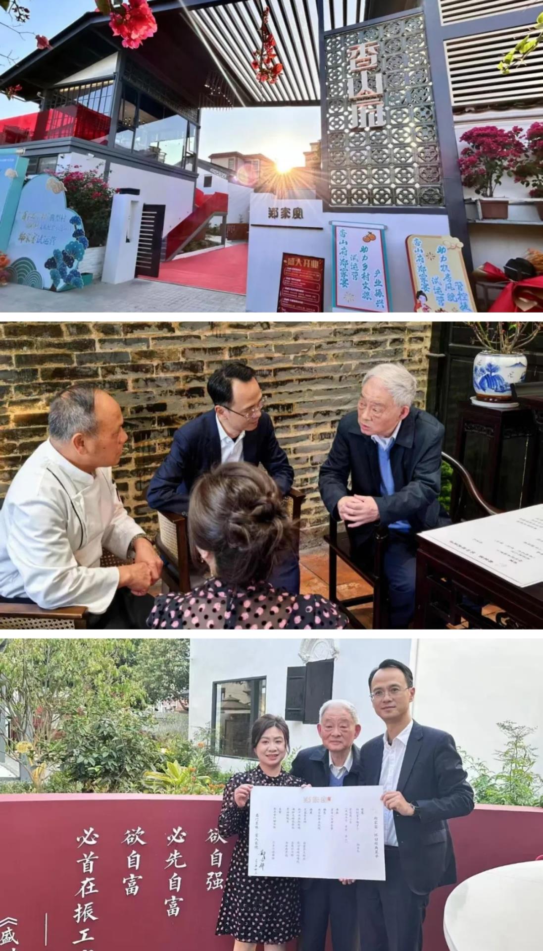 暮春的雍陌村,月浸青檐,溪穿庭院。作為中山溫泉旗下“香山府”品牌系列產(chǎn)品,這座由四棟百年農(nóng)房涅槃而成的鄭家宴餐廳,正靜靜等待著一場(chǎng)跨越時(shí)空的家族對(duì)話。當(dāng)鄭觀應(yīng)之孫鄭吉祥先生和鄭觀應(yīng)五弟鄭翼之的玄孫女鄭櫻楠邁入這座老宅門檻時(shí),濃得化不開的鄉(xiāng)愁在此刻輕輕沉淀。在鄭氏后人歸鄉(xiāng)的燈火中,鄭家宴餐廳以“舌尖上的文脈”為鄉(xiāng)村振興寫下鮮活注腳。