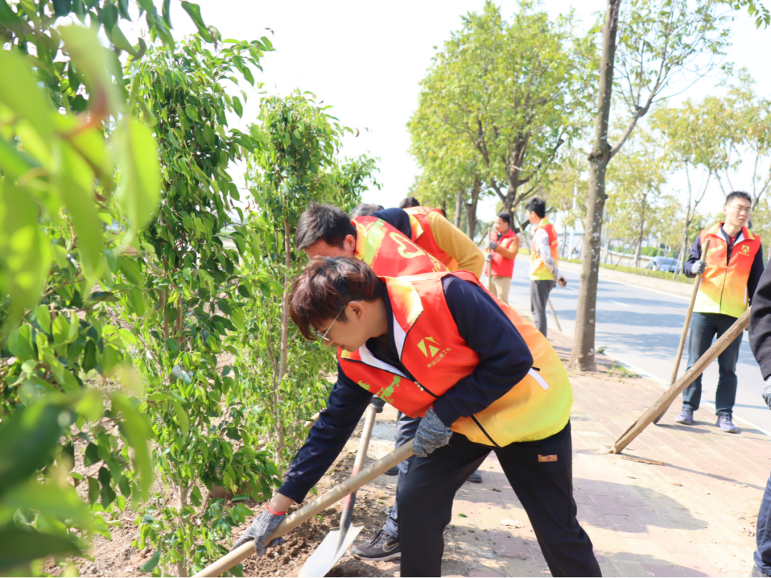 ▲3月19日,公用工程黨支部聯(lián)合阜沙鎮(zhèn)城建管局黨支部、阜沙鎮(zhèn)城更中心黨支部開展植樹活動(dòng)。(攝影:鄧曉琳)
