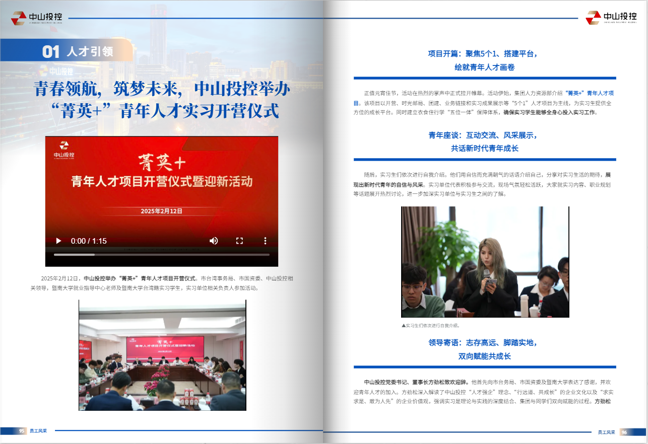 在“員工風(fēng)采”欄目,展現(xiàn)出集團(tuán)員工的擔(dān)當(dāng)與風(fēng)采。“菁英+”青年人才實(shí)習(xí)開營儀式匯聚暨南大學(xué)臺(tái)灣籍學(xué)子,“5個(gè)1”培養(yǎng)體系搭建立體成長平臺(tái),助力青年人才“沉浸式”融入灣區(qū)發(fā)展。合規(guī)風(fēng)控培訓(xùn)引入安永專業(yè)團(tuán)隊(duì),構(gòu)建“風(fēng)險(xiǎn)、內(nèi)控、合規(guī)”三位一體體系,筑牢經(jīng)營防線。此外,投控集團(tuán)員工們?cè)诟髯詬徫簧暇ぞI(yè)業(yè),為集團(tuán)發(fā)展貢獻(xiàn)力量,彰顯了投控人的精神風(fēng)貌。