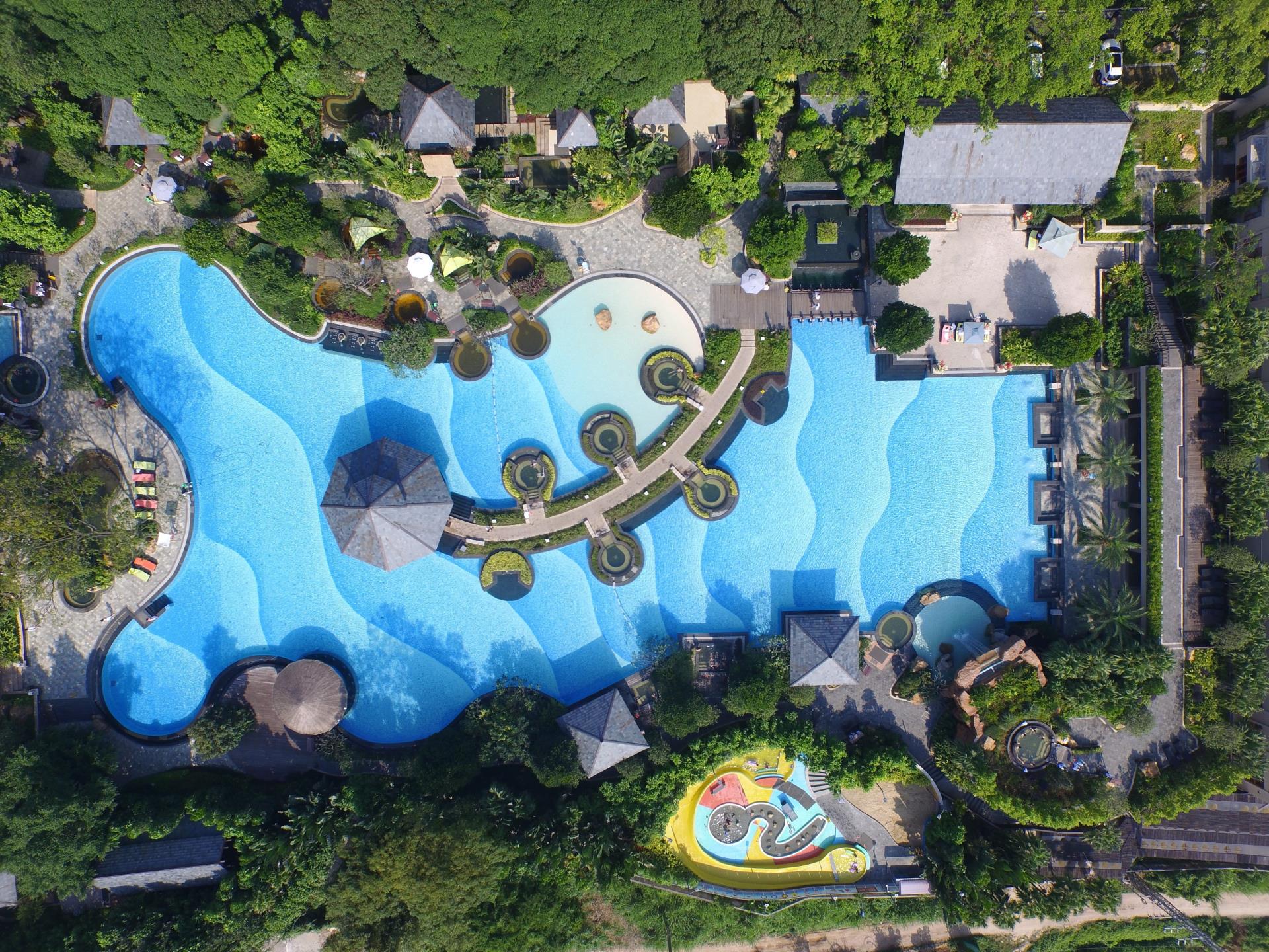 中山溫泉整體面積約309畝,建筑面積約8萬㎡,擁有客房388間(床位703個),分布在5個園區(qū)內(nèi)(中心園、商務園、親水園、翠亨園、別墅區(qū));中西餐廳、大堂吧各1個(合計餐位2116個),大中小會議室10個,溫泉園有48個特色泡池、1個2500平方米的山泉水大泳池。